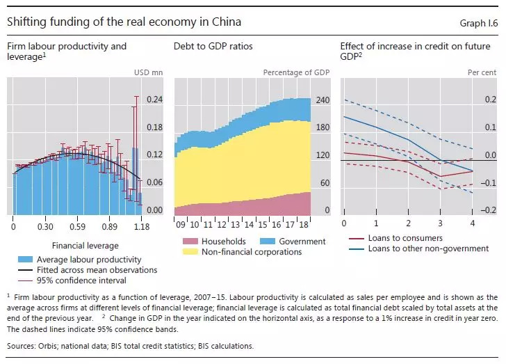 非金融企业信贷增长的下降被家庭和预算内政府债务的进一步增加所抵消。因此,非金融部门债务与GDP之比 (衡量杠杆率的一种指标) 基本上没有变化 (图I.6,中间面板)。尽管如此,总体而言,债务构成的转变可能拖累了经济增长。使用省级数据的估算表明,与商业贷款不同,消费者贷款第一年对GDP没有明显的影响,三年后会降低 (右侧面板)。这可能是因为消费者主要使用信贷购买住宅物业,而企业则将其用于固定资产投资。