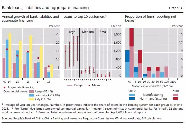 经济放缓和贸易紧张局势加剧了中小企业的困境,其中包括大量的制造业企业。有关中小企业表现的详细数据尚不清楚。然而,上市公司的最新财务数据显示,尽管2018年非金融企业报告亏损的比例全面上升,但受影响最大的还是小盘股公司和制造商(图I.C,右侧面板)。其影响在宏观经济上是显著的:规模最小的一类公司利润之下滑抹去了0.2个百分点的GDP增长。此外,该类别公司2018年的市值下滑了近40%,是整个市场缩水幅度的1.5倍。这反映出人们对未来盈利能力的日益担忧,进而反映了在高负债下对企业财务健康状况的担忧。