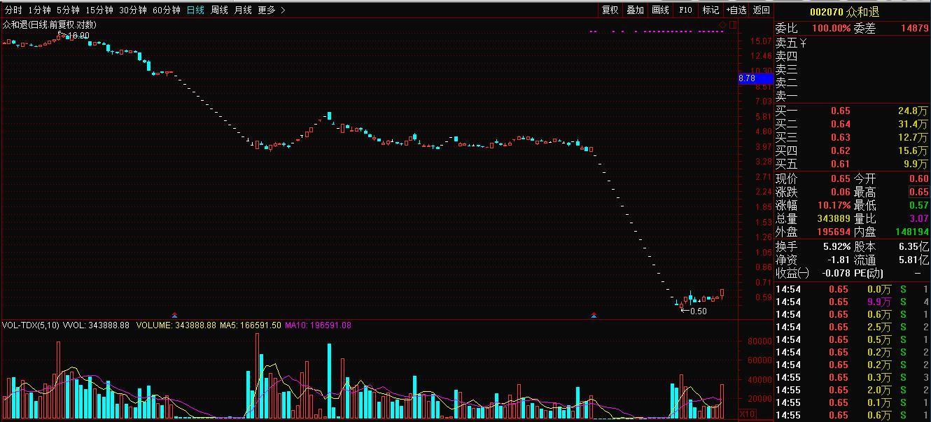 虽然在上周五的交易中,还涨停收盘,只是收盘价只有0.65元,对于低位“割肉”的原股东来说,内心必然是沉痛的;同样可能沉痛的,就是如前文所述,新进想博取短线收益的投资者,或者,还有一些人,连名字加上一个“退”字,到底是什么意思都不知道,就直接入场的新股民。