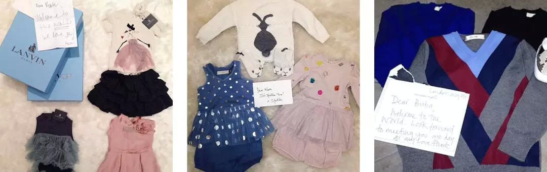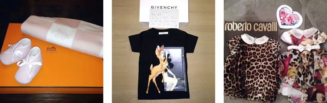 刚出生,Hermès、Givenchy、Celine、Lanvin等品牌就往她家寄贺礼啦,都是各种可(很)爱(贵)的小衣裳,不少都是特意定制的。