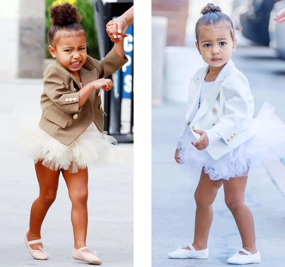 特别是Balmain。因为卡戴珊家和Balmain关系很好,而且它家的创意总监Olivier Rousteing视小西北为灵感小Muse,所以小西北有一堆它家的定制小衣服。