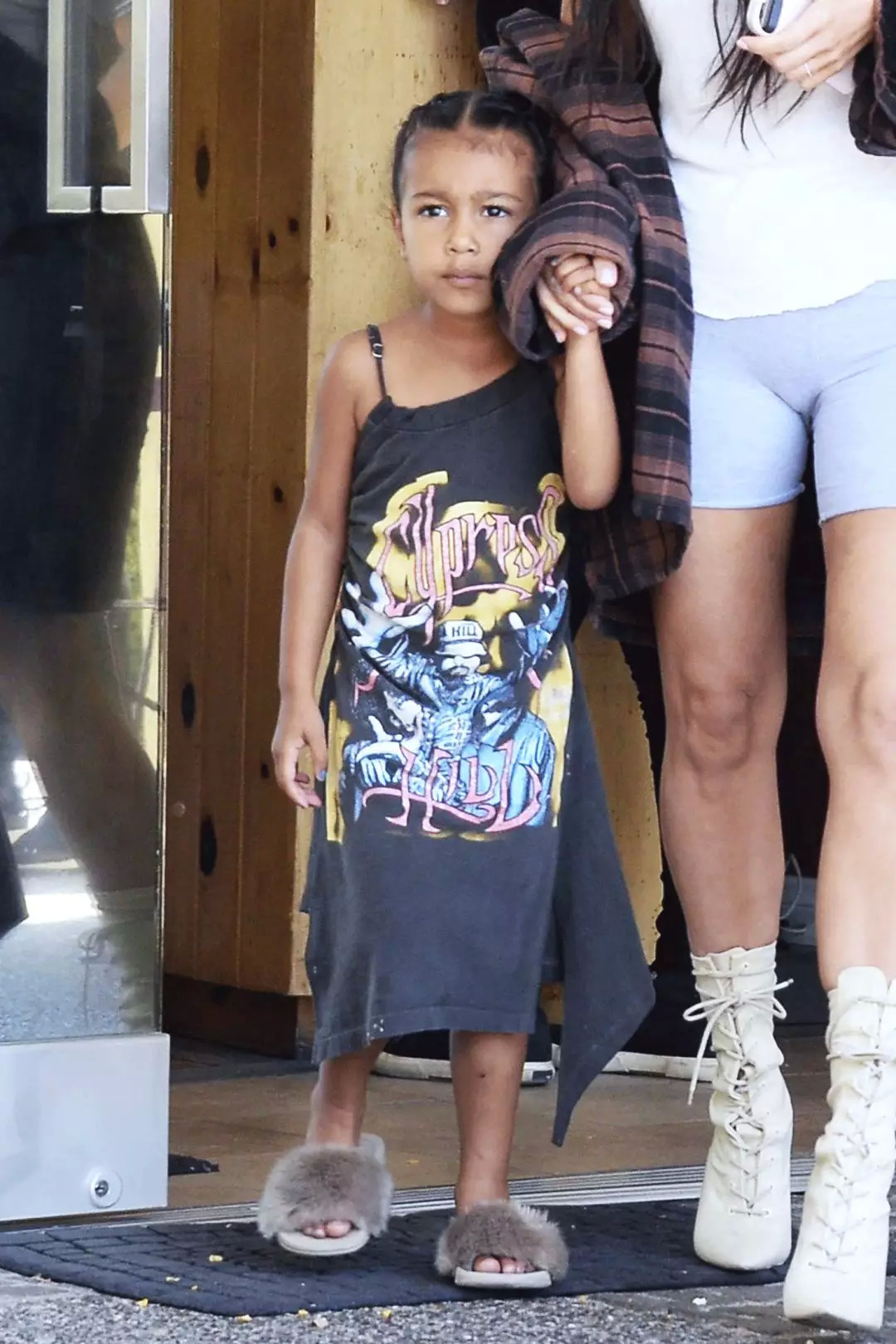小西北说自己长大后想当舞者、歌手和Rapper。她的衣裳上就经常有Rapper,不对称吊带背心裙上印着拉丁说唱组合Cypress Hill。