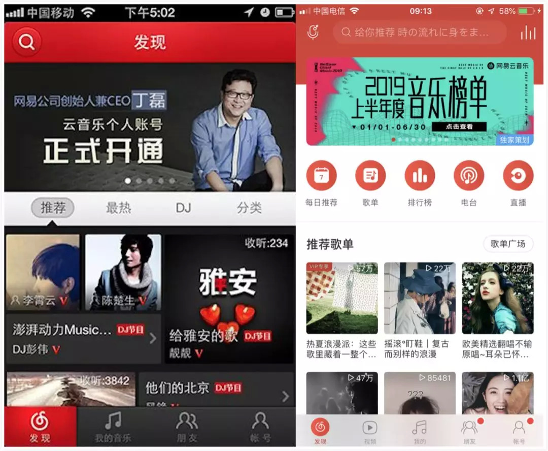 但是当我们回头去看2013年彼时刚上线的第一版网易云音乐,和今天的网易云音乐一对比,还是发现了一些很有趣的事情。