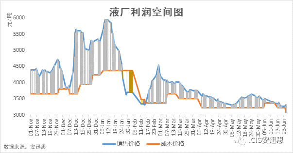 6月25日,陕蒙地区中石油直供气工厂原料气价下调0.1至1.78元/方,液厂成本下降145元/吨。上周,由于市场需求疲软及进口LNG低价冲击,国产LNG出货受阻,液厂库存承压,不得不降价出货,导致成本倒挂。如今原料气价格下滑,液厂的经营窘境得以缓解。