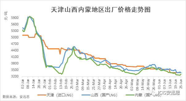 目前中石油第五采气厂检修,导致陕蒙地区个别液厂气源受阻,自6月25日起停机5日,于是局部地区出现供应减少的局面,带动国产LNG价格小幅上调,但多数液厂人士认为,本轮涨价持续时间不长,受需求疲软影响,价格还将继续下跌。
