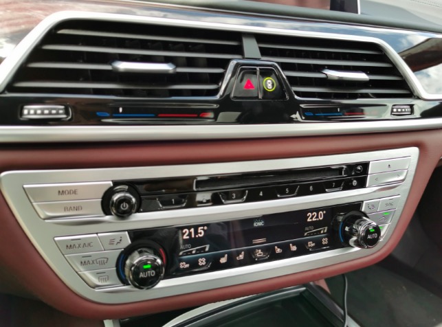 新7系在运用了触摸、旋钮和手势控制等时尚科技元素的同时,并没有完全放弃物理按钮。用户可以通过高质感的镀铬按钮和触摸按键的方式轻松控制空调、车内通风等常用功能。