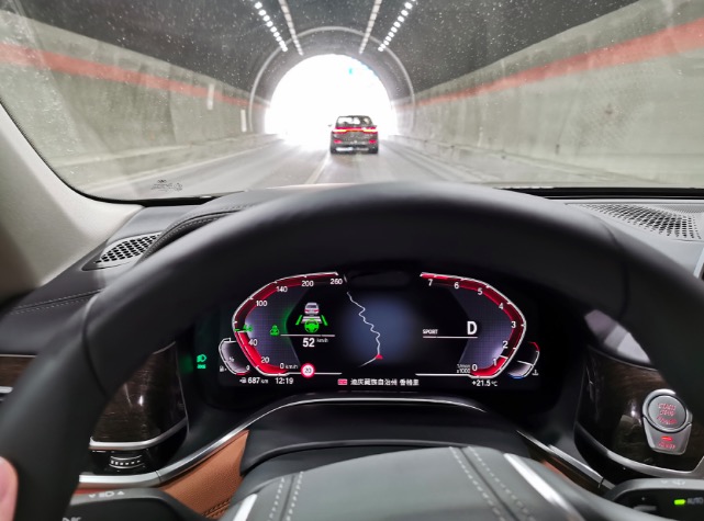 加上后轮主动转向和Servotronic随速助力转向系统,长达5米多的新7系并不会让你感受到“屁股”的存在。每一个弯道都按照预设的轨道顺滑通过,即便在靠近悬崖的一侧,这台车的稳定性也足以抵消高度落差给人带来的不安定感。