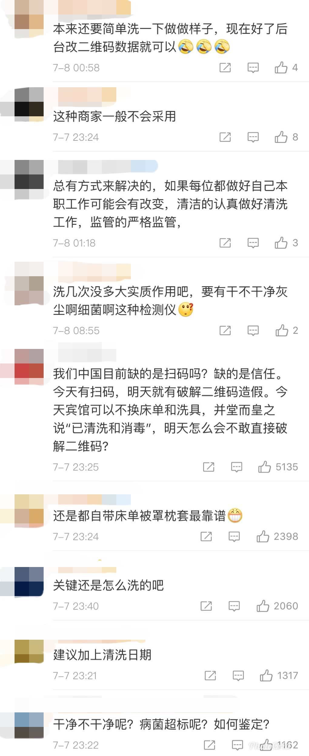 酒店床单二维码的操作正中消费者心中的痛点,引起网友们的广泛讨论。有人认为这项新技术可以加强对酒店布草洗涤的消费者监督,但也有网友认为,仅仅了解布草洗涤次数,不足以保证布草洗涤的卫生和安全。