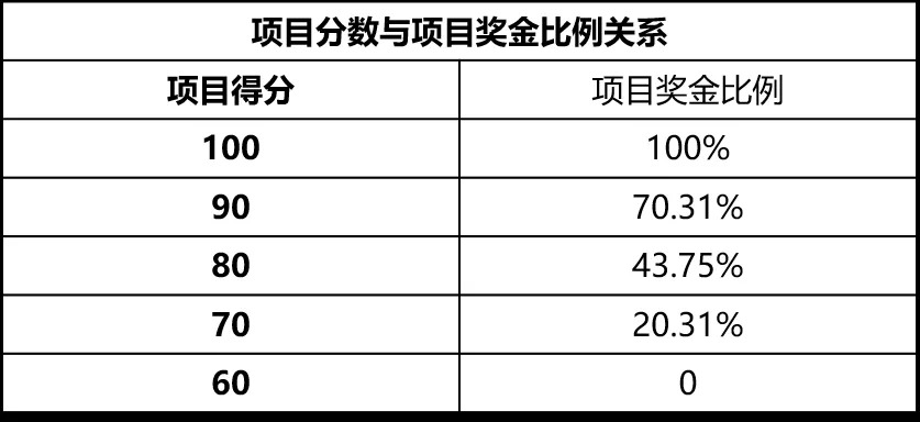 5.5 考核得分小于等于 60 分时无项目奖金,且项目组骨干成员扣绩效普通成员不扣,详见第 8 章节。