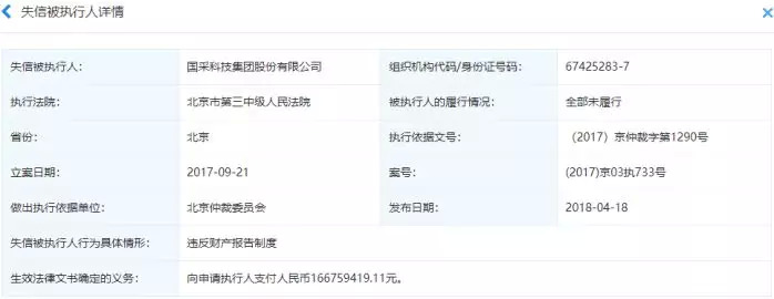 工商资料显示,北京信构信用管理有限公司共三个法人股东,分别为国采科技集团股份有限公司 (50%)、北京豪迈创业投资有限公司 (30%)、中采物联(北京)供应链管理咨询有限公司 股权结构 (20%)。企查查数据显示,2018年4月,“国采科技集团”被申请执行1.6676亿元,因违反财产报告制度,被北京市第三中级人民法院列入失信被执行人。