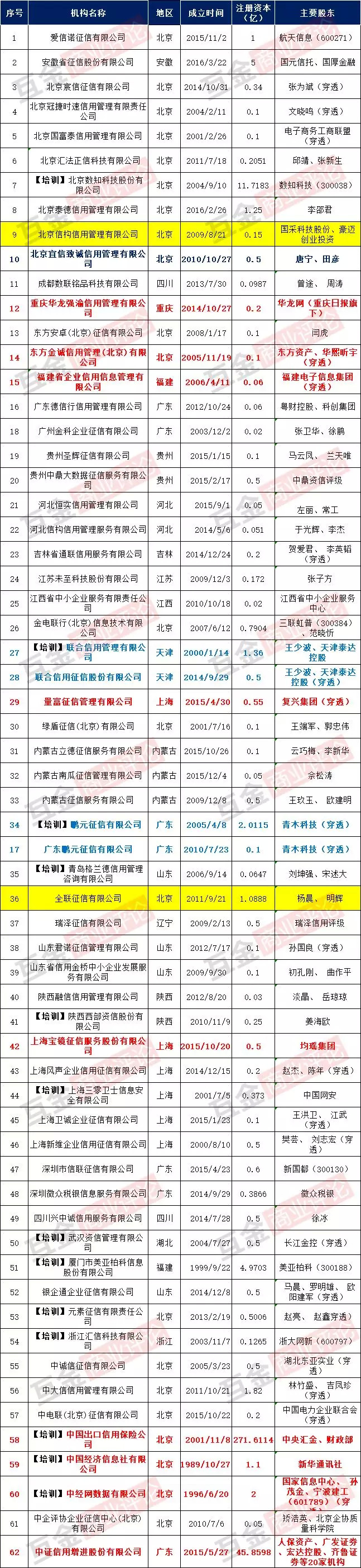 注:机构名称前加【培训】为可承担信用修复专题培训的服务机构,共计13家。