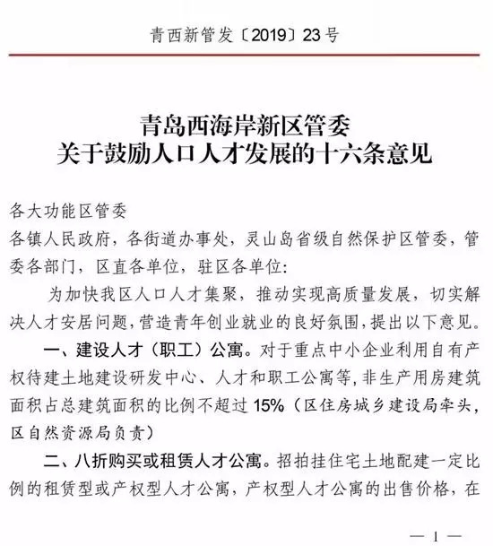 青岛西海岸新区制定并发布了《关于鼓励人口人才发展的十六条意见》,各项政策更加宽松优厚,补贴力度空前,为吸引和留住人才放出“大招”。在人才关注的人才公寓、住房、子女教育、卫生服务、就业、落户、补贴等方面做了详细规定,含金量高、保障力足、针对性强、覆盖面广,既覆盖到高层次人才,也涵盖了以大学生、技能人才为主的基础性人才。