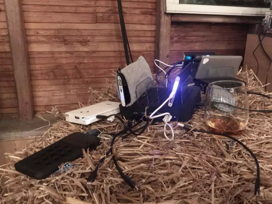 下午3点比赛开始,天特别冷。11点多回到露营地,三个充电宝都没电了,我浑身颤栗着来到唯一的充电区——酒吧附近的调音台旁边,但只抢到了两个USB口。然后我去酒吧问一口英音的服务员“你们有烈酒吗?”他说只有Jonny Walker。“我要两份。”他又问我:“加冰吗?”我翻了翻白眼儿。