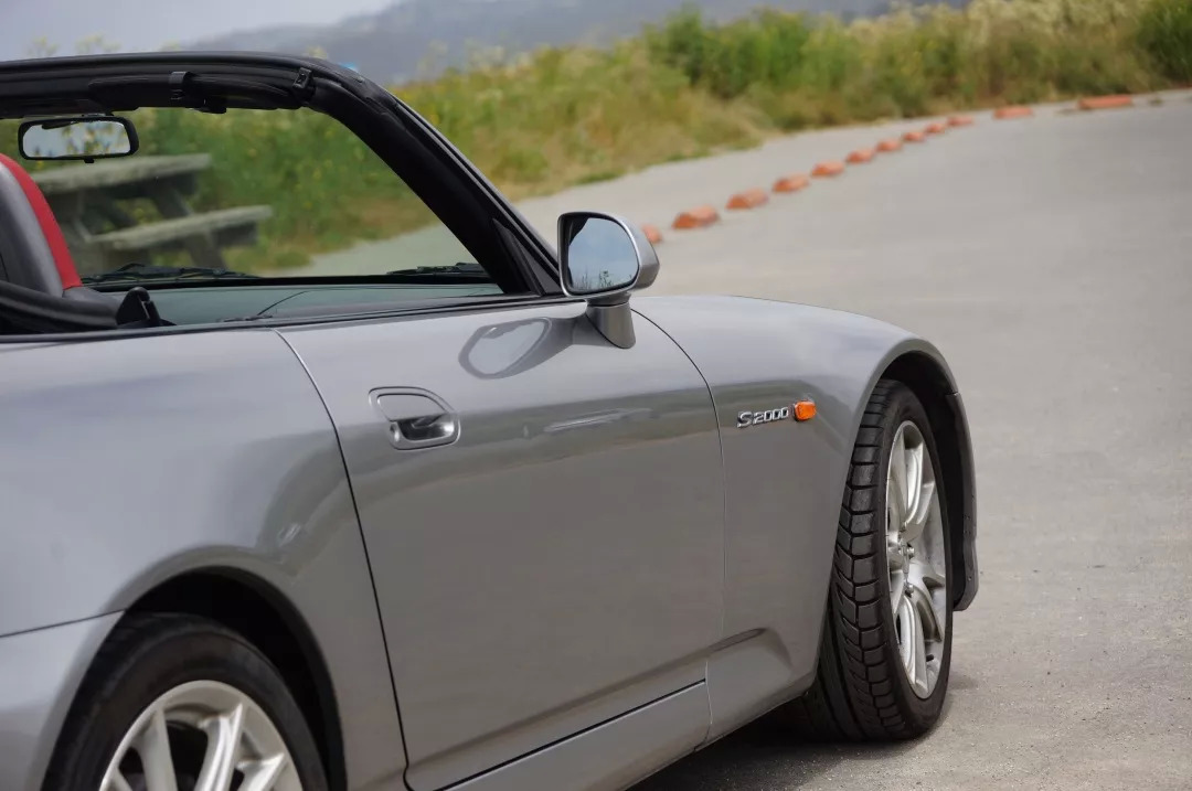 而我这次试驾的S2000,则是2006年款。2004年中期改款时,本田针对美国高速巡航的需求,单独将美国版本的发动机更换为F22C1,排量增大了160cc,最大扭矩增大了6%,达到220牛米,但因为红线转速也同时降低到8000转,最大马力保持不变,所以升功率是有所降低的。此外,全球车型都对轮胎和悬挂进行了改进。