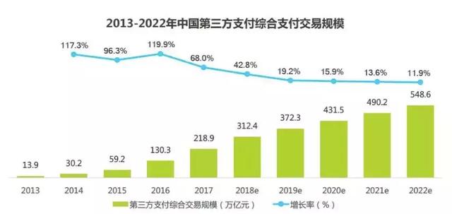 数据来自艾瑞iresearch《2018中国第三方支付年度数据发布》