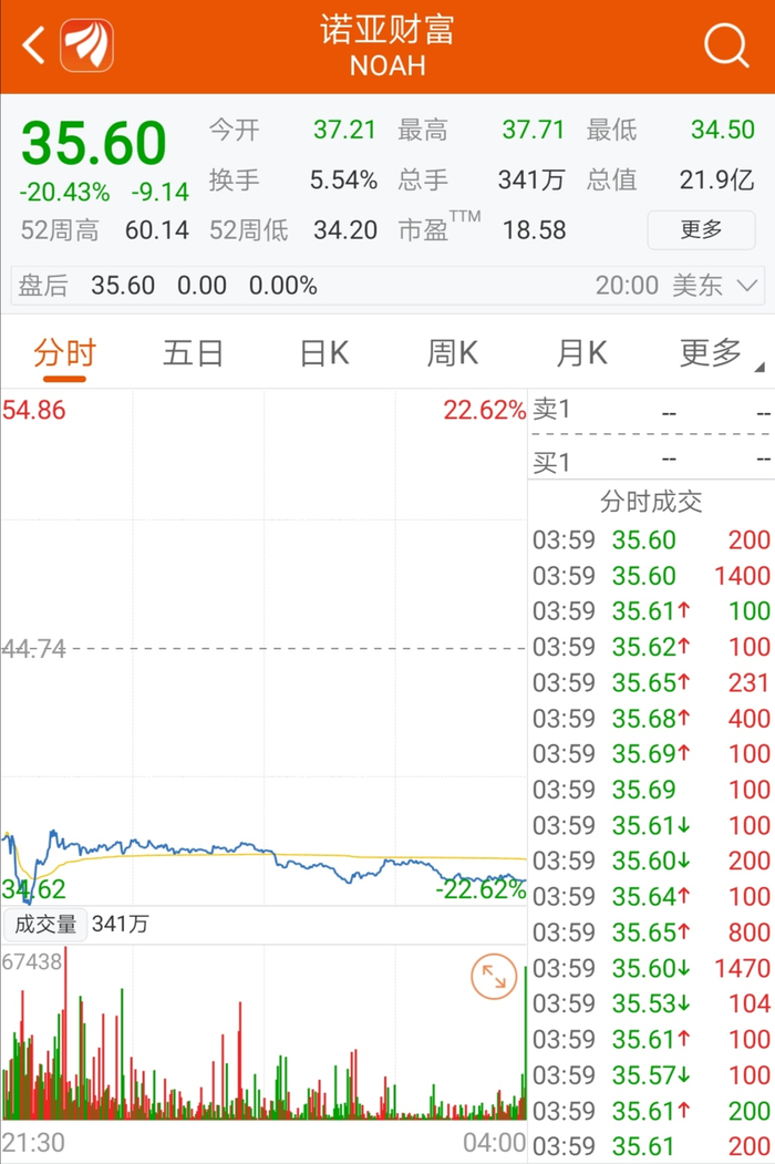 受上述消息面影响,7月8日晚间,美股诺亚财富(NOAH)的股价开始闪崩,截至收盘跌幅超20%。