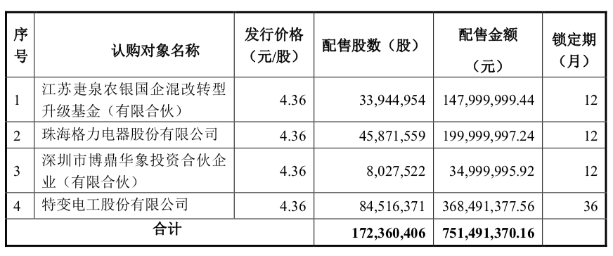 本次入股新疆众和的并非格力电器一家,还有江苏疌泉农银国企混改转型升级基金(有限合伙)、深圳市博鼎华象投资合伙企业(有限合伙)以及其大股东特变电工股份有限公司。值得注意的是,格力电器并非在其首轮申购之时入股,而是在新疆众和追加认购时才申请认购。本次新疆众和募集总金额为7.51亿元。
