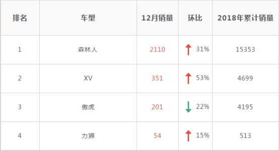 反观斯巴鲁,去年2018年全年共计销售近2.48万辆,同比下降19%。旗下四款车型,森林人、XV、傲虎、力狮的销量看着也是让人直呼心疼。