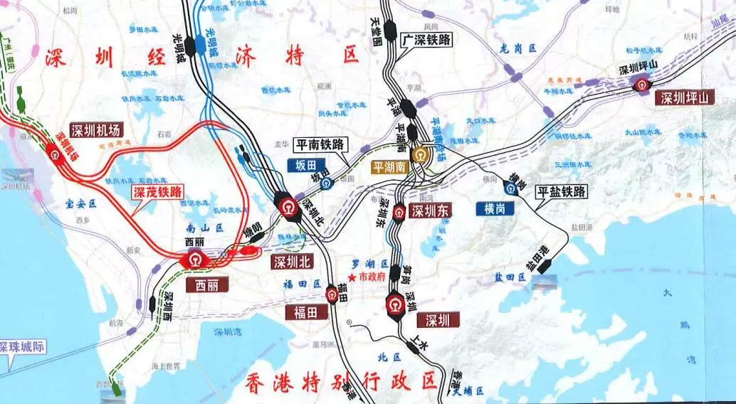 根据规划,西丽高铁站被定位为深圳铁路客运站主枢纽之一,规模达到11个站台22条线,将承担赣深高铁、深茂高铁、深汕客运专线、沿海高铁等多条高铁线路的始发终到功能。同时也将串联起片区内5号线、7号线、13号线、15号线四条地铁线路,构成北部片区交通路网。