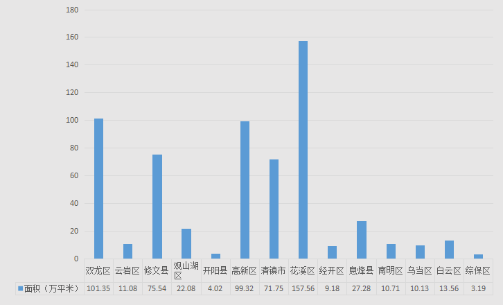 成交宗数最少的是白云区、南明区,均为1宗——白云区成交面积约13.56万平米,成交金额23.92亿元;南明区成交面积约10.71万平米,成交金额20.9亿元。