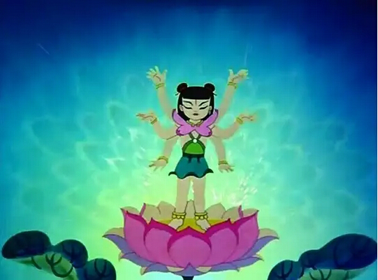 这部动画短片的故事来自于敦煌壁画上的佛教故事,画风也借签了敦煌壁画的风格,虽是动画片,却拍出了神秘慈悲的佛教蕴味,最终国王欲射死九色鹿,却为神迹所阻挡,这神迹以及九色鹿的配音,都给人以凛然不可冒犯之感。