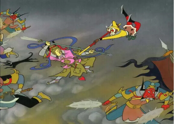 “影片既有迪斯尼式的生趣,又有迪斯尼所没有的民族特色画风……这部影片可以和《圣经》中的神话故事以及希腊的民间传说媲美。它们同样是充满了无穷的独创性、迷人的事件、英雄式的行为和卓越的妙趣。”这段影评出自影评家凯恩·拉斯金,其所评价的就是“中国学派”的代表作品《大闹天宫》。《大闹天宫》的画风独树一帜,而表现为彻底的中国传统艺术风格,借鉴了中国山水绘画、民间及佛教绘画、中国建筑、雕塑、京剧等等的艺术形式,达到很高的成就。影片反抗权威与建制、争取自由的精神,对于不熟悉孙悟空故事的外国观众反而体会更深。本片也是中国动画举国体制时代诞生的第一杰作,除了动画大师万籁鸣兄弟,还有杰出的国画大师张光宇兄弟为本片担任人物和场景设计,邱岳峰的配音更成为影片的点睛之笔。这一切都使这部被文革打断的动画成为中国乃至世界平面动画时代不可再得的绝响。