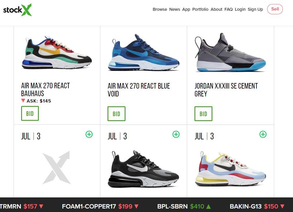 StockX 由 Josh Luber 、Greg Schwartz 及 NBA 克利夫兰骑士队(Cleveland Cavaliers)的老板 Dan Gilbert 创立于 2016年2月,其前身为 2012年创立的运动鞋数据公司 Campless。与证券交易一样,各类不同的限量版或者值得收藏的运动鞋、高级包袋、手表等商品的价格随着消费者的偏好而波动,价格大多为数百或数千美元。StockX 平台的呈现形式和商品交易方式类似于股票交易所:登记的产品先进行招标,然后卖给出价最高的投标人。与股票交易所类似,StockX 也拥有一个滚动显示屏,每次新交易后都会更新价格。(详见《华丽志》报道:像交易股票那样买卖球鞋!全球首个运动鞋交易平台StockX 客户群体从美国延伸到中国)