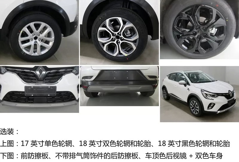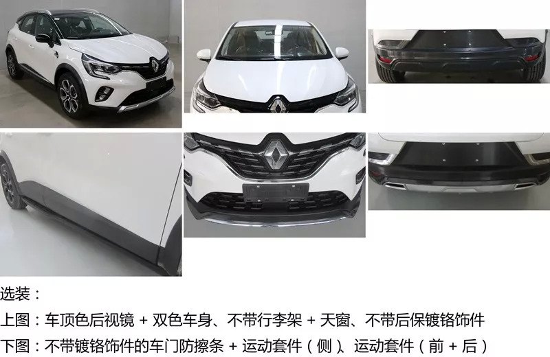 值得注意的是,工信部其实申报的科雷缤有两个版本,姑且称之为 “豪华版”和“运动版”。豪华版就是带有更多的镀铬装饰件,而运动版应该是带有运动套件,用了更多黑色钢琴漆饰条,同时采用了双色车顶,另外还可以配搭一套18寸黑色高光轮毂。当然,预计乞丐版的配置也比较低,没有行李架和天窗,只有17寸单色轮毂,以及取消掉更多的装饰。