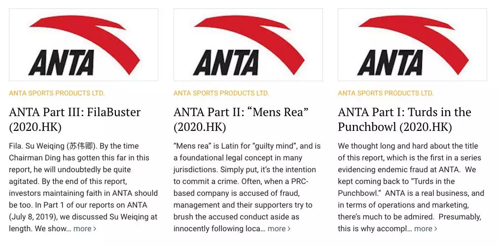 7月9日,浑水发布了第二篇做空报告,题为《ANTA Part II: “Mens Rea”》,指出安踏在IPO之后的一系列交易,涉嫌内部腐败欺骗投资者,以投资者为代价谋取私利。