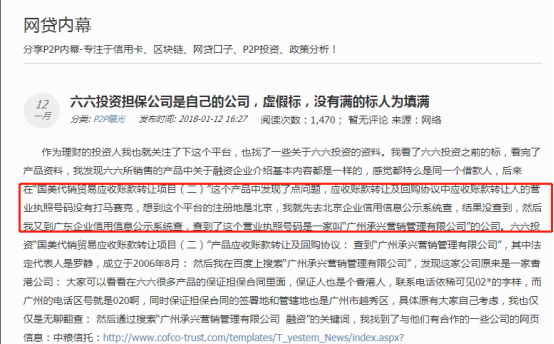 彼时,不少爆料人表示,六六投资所发布的标的中有4个项目手写日期字体大小、签字位置完全相同,怀疑应收账款合同系伪造。一名投资人在网络发帖称,其发现“国美代销贸易应收账款转让项目(二)”产品中应收账款转让人的营业执照没有打马赛克,后查询到主体为“广州承兴营销管理有限公司”,而该公司法人代表正是罗静。