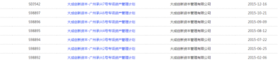 2015年,钜派集团发行钜洲资产承兴应收账款投资基金一期、二期两只私募产品,同年,大成创新先后为其成立了7只专项资管计划。