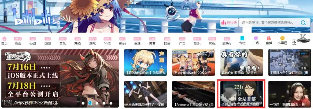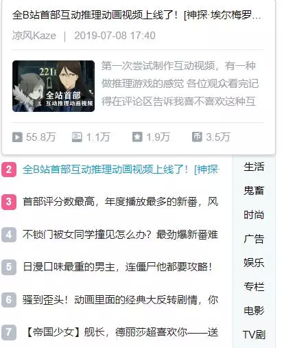 抛开技术运用、剧本撰写、节奏把控等硬核向问题,我们不妨从更直接的视频点击量和排名来看结果。从7月8日上线到7月11日,在B站首页头部的推荐区以及各大分区的三日榜上,能看到的互动视频只有极少数。也就是说,在B站酝酿已久、众多人气UP主协力、粉丝助力推广的组合拳下,这个全新的体验模式并没有带来屠榜或占据半壁江山的爆款效应。