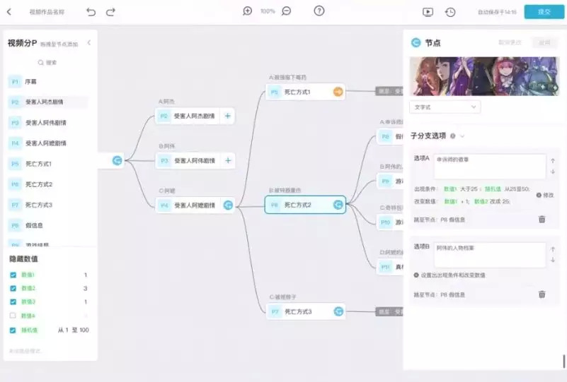 B站互动视频编辑页面,看上去有没有一种游戏策划的既视感?