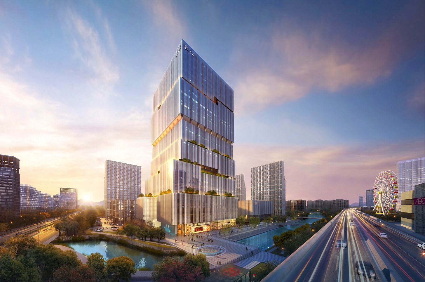 项目位于良渚世遗的门户位置,是一个集地标写字楼、千人剧院、主题酒店、商业广场、SOHO空间等为一体的 TOD 产城融合综合体。