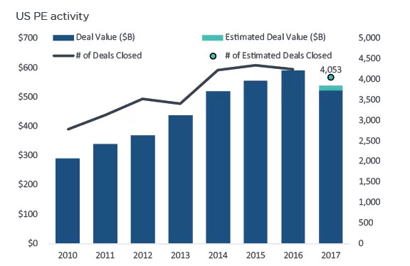 表3.美国私募股权基金近年交易规模;数据来源:PitchBook、基岩研究院