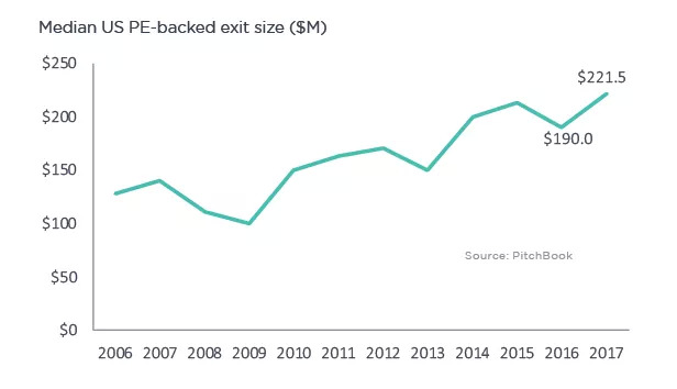 表4.美国私募股权基金近年平均退出规模;数据来源:PitchBook、基岩研究院