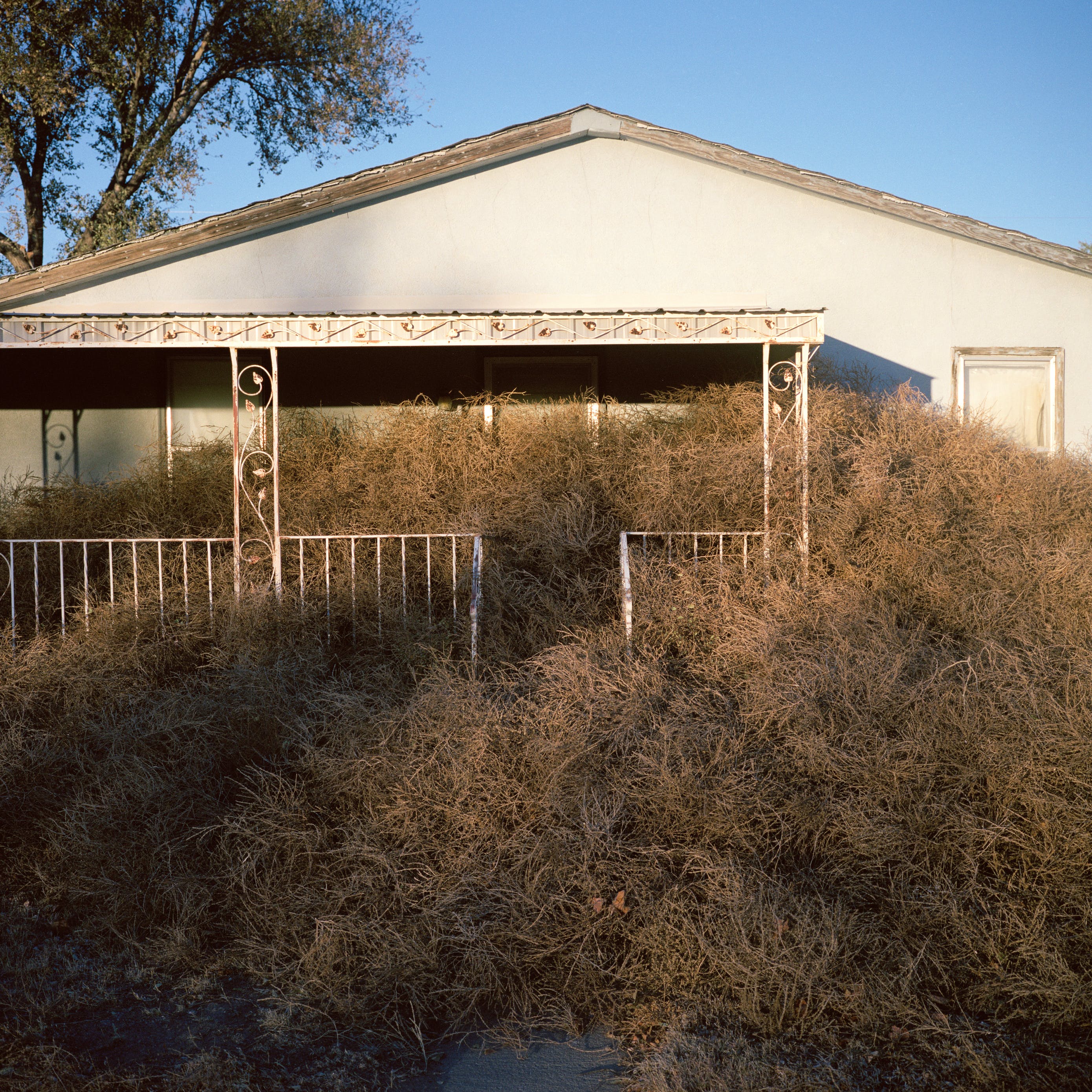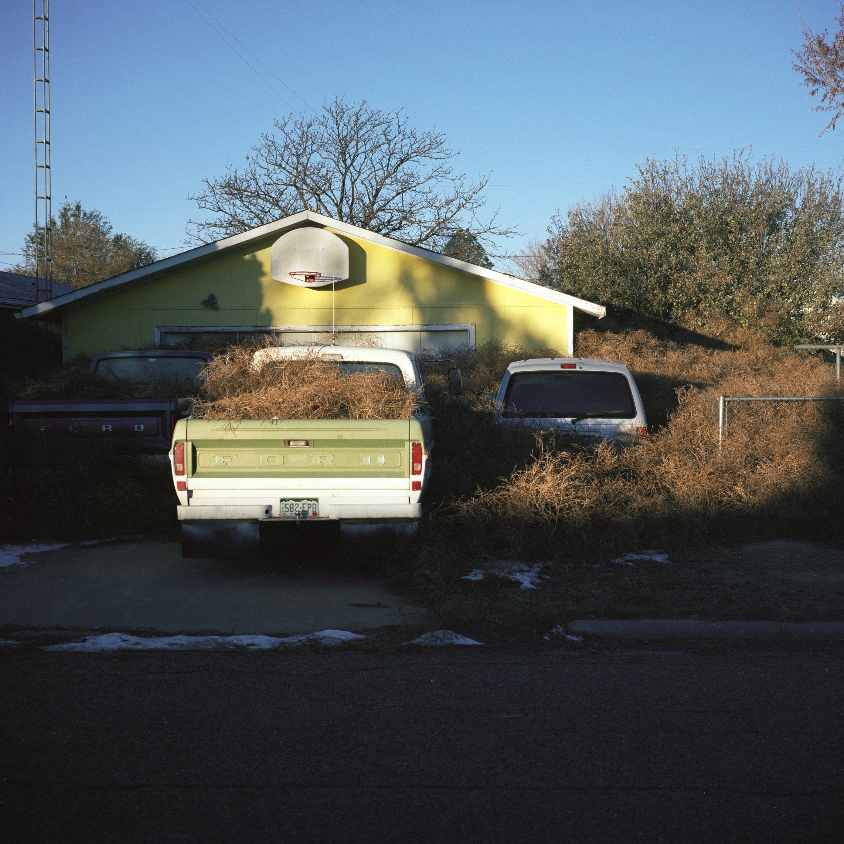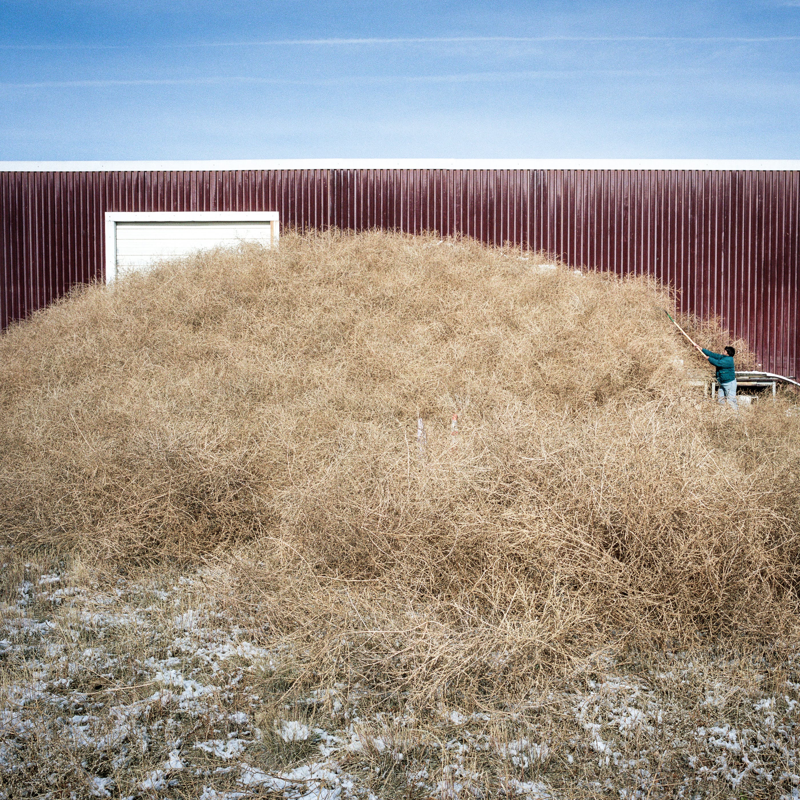 19世纪70年代,风滚草被引入美国,它在流行文化中被当做孤独的流浪者。这个角色在改变。一年到头,数百万棵风滚草掩埋了美国西部的道路、房屋,有时甚至整个市镇。在这些照片中,Stroomer打破了风滚草的比喻形象,它不再是一个孤独的旅行家,天真无邪地穿过空旷美丽的美国西部。他也发现,他对自己的拍摄对象有些过敏。他告诉我:“如果我穿过一堆齐腰深的风滚草,我就会打喷嚏。”即便如此,他还是对风滚草产生了勉强的尊重。“我不会说我喜欢它们,但看到它们成为文化的一部分,我会产生一种特殊的偏爱。它们是个问题——但它们是个有趣的问题。”