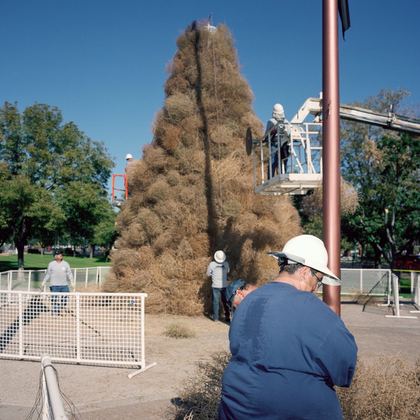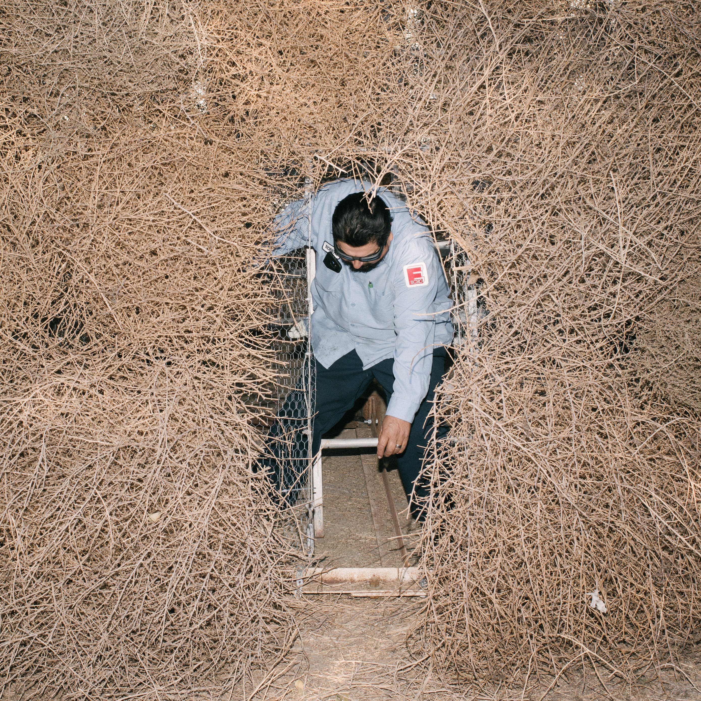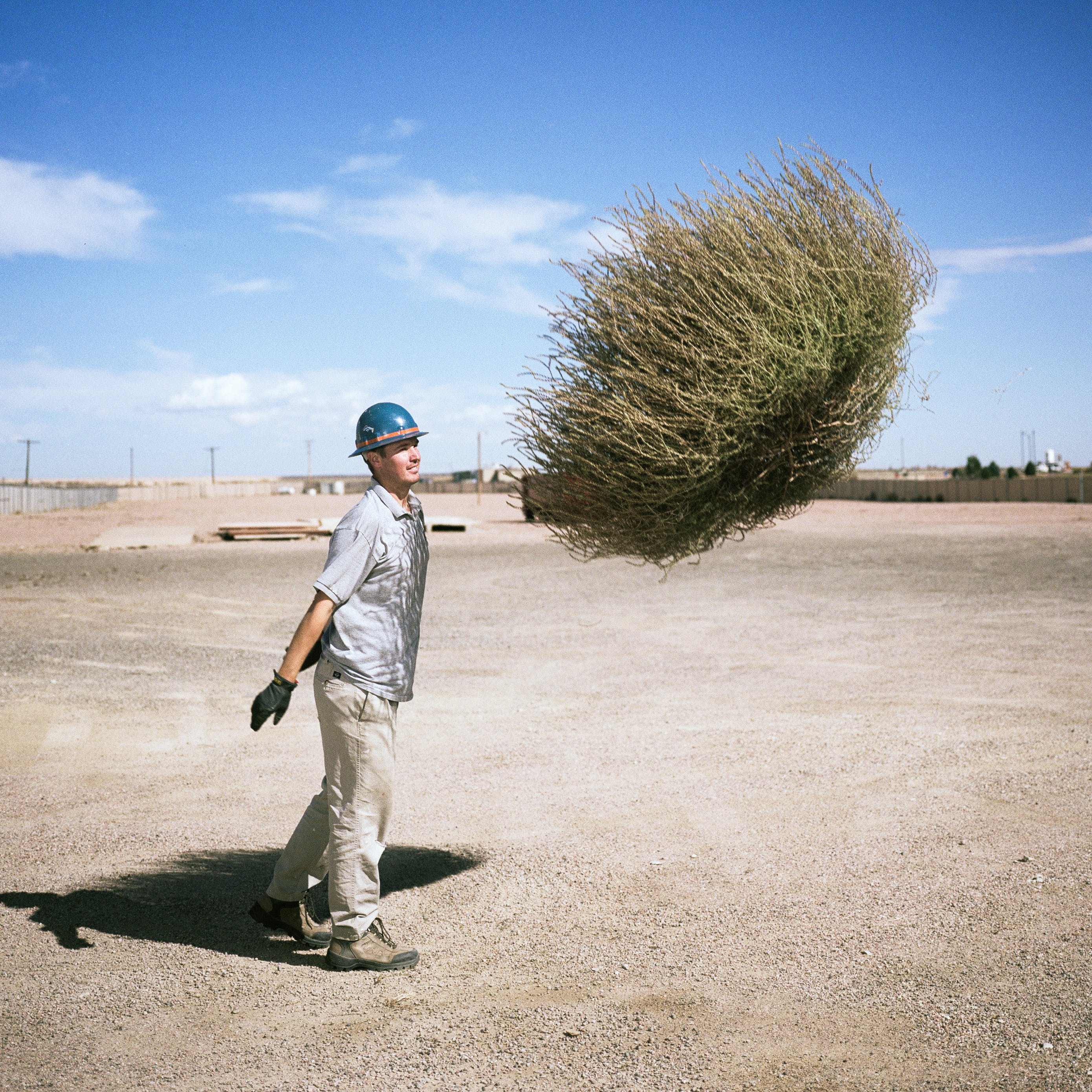 19世纪70年代,风滚草被引入美国,它在流行文化中被当做孤独的流浪者。这个角色在改变。一年到头,数百万棵风滚草掩埋了美国西部的道路、房屋,有时甚至整个市镇。在这些照片中,Stroomer打破了风滚草的比喻形象,它不再是一个孤独的旅行家,天真无邪地穿过空旷美丽的美国西部。他也发现,他对自己的拍摄对象有些过敏。他告诉我:“如果我穿过一堆齐腰深的风滚草,我就会打喷嚏。”即便如此,他还是对风滚草产生了勉强的尊重。“我不会说我喜欢它们,但看到它们成为文化的一部分,我会产生一种特殊的偏爱。它们是个问题——但它们是个有趣的问题。”