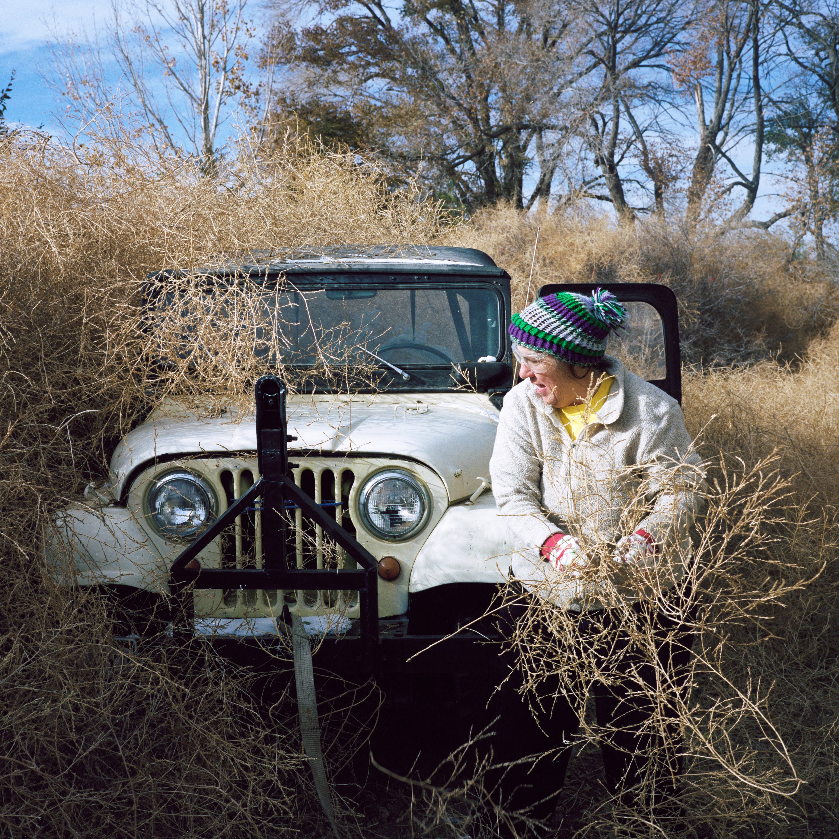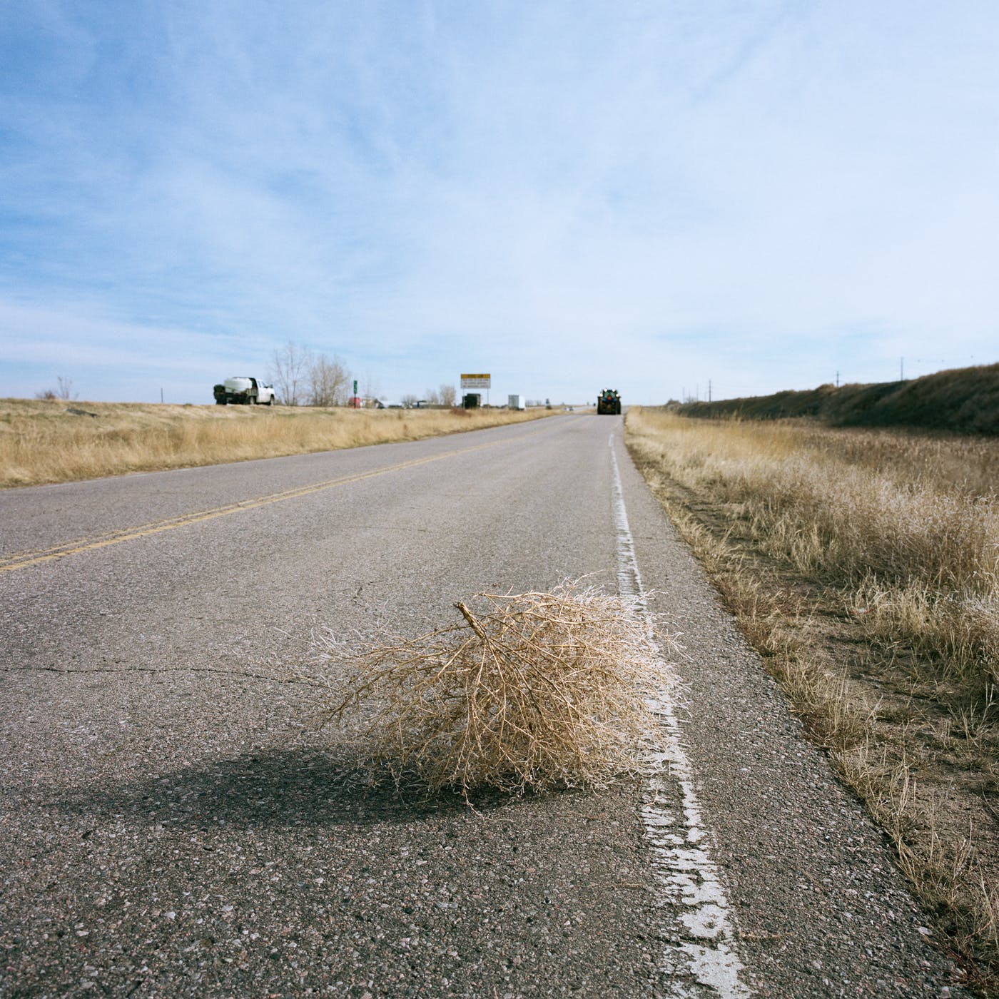 几年前,科罗拉多出身的摄影师Theo Stroomer听说科罗拉多平原上的一个小镇被风滚草淹没了。尽管当地媒体很少报道风滚草风暴,但它的发生的确有一些规律性。当风和天气系统共同作用,使得成千上万,有时是数百万的刺状草团翻滚进来,吞噬商店、房屋和汽车时,就会出现这种情况。过去的六年里,Stroomer一直在中西部和大平原追踪这些风暴。风暴既麻烦又危险——尽管,据Stroomer所知,还没有人因此毙命。它们也越来越普遍:由于气候变化,美国西部的荒草化正在加速,并因人类活动而进一步加剧。