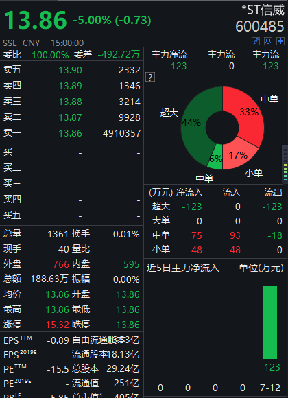 但迎接15万投资者的,是预料之中的开盘跌停,截至收盘,*ST信威的全天成交量达188.63万元,跌停板上仍有491万手的封单压顶。