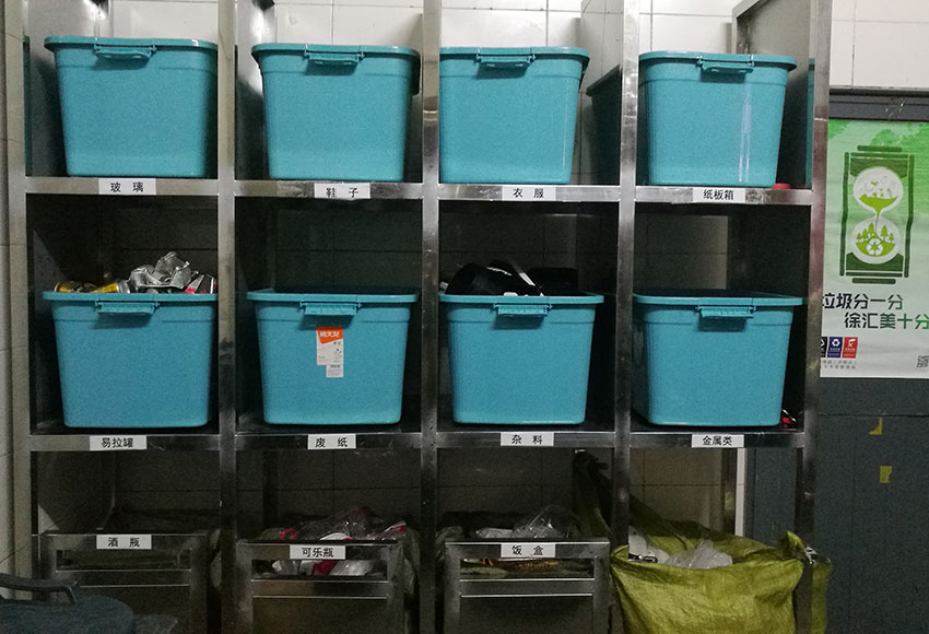 更值得一提的是, 田林十二村目前的垃圾厢房采用“智慧门禁”系统,居民刷卡开门扔垃圾。门禁卡有时间设置,且采用实名登记制,与个人绿色账户关联,每正确投放一次垃圾,绿色账户便会自动积分。厢门上还安有微型摄像头,对于误时和混合投放的居民,居委会能及时获悉相应的住户信息,对点治理。