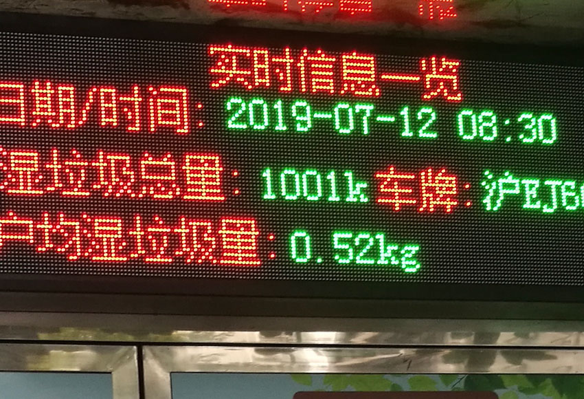 除了画上的石子路、洗手池,田林十二村居委会还给垃圾房安上了雨棚,解决了雨天的不便。垃圾房上的电子屏则将当天湿垃圾总量、户均湿垃圾量以及当日环卫作业车车牌号和清运时间公示出来,打消居民对垃圾混装混运的疑虑。