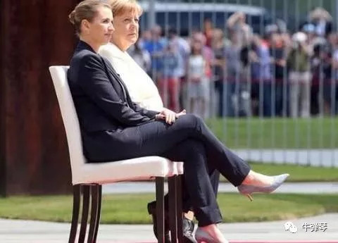 为了避免再次出现不测。人们惊奇地看到,7月11日,默克尔在欢迎丹麦新首相来访时,干脆和对方都坐在了椅子上,坐着检阅了仪仗队。