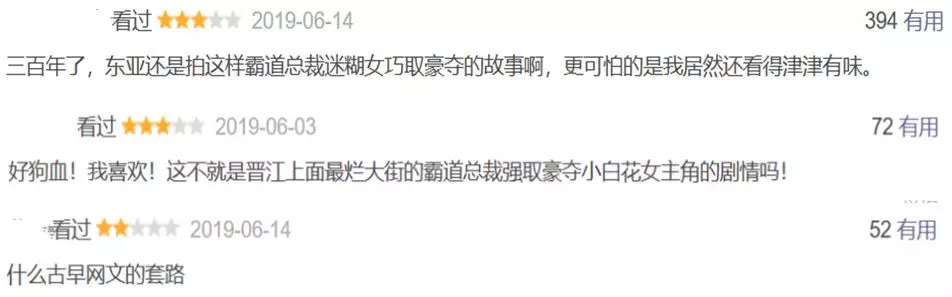 另一部分则认为,这部剧十分老套,用的是十多年前霸总、玛丽苏、一见钟情的套路。