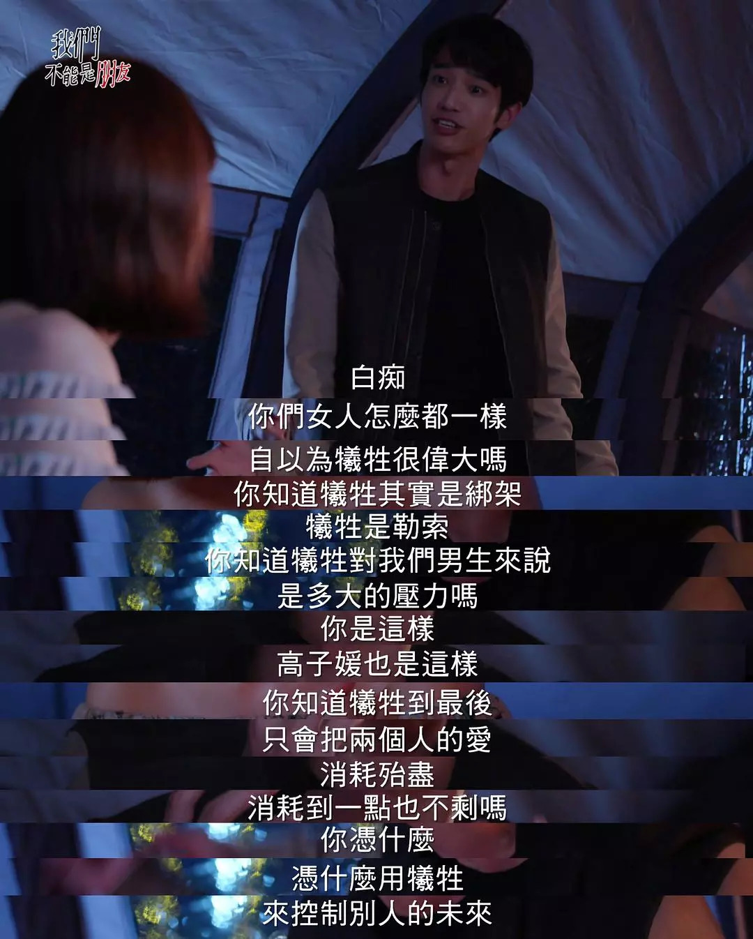 男女主和现任之间的关系,正是《我们不能是朋友》和原本偶像剧的一个重要区别。