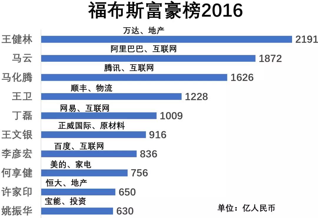 这一年王健林还没提出“小目标”,屈居第十,互联网行业还没那么火爆,只有马化腾进入前十,而地产行业有3个进了前十。