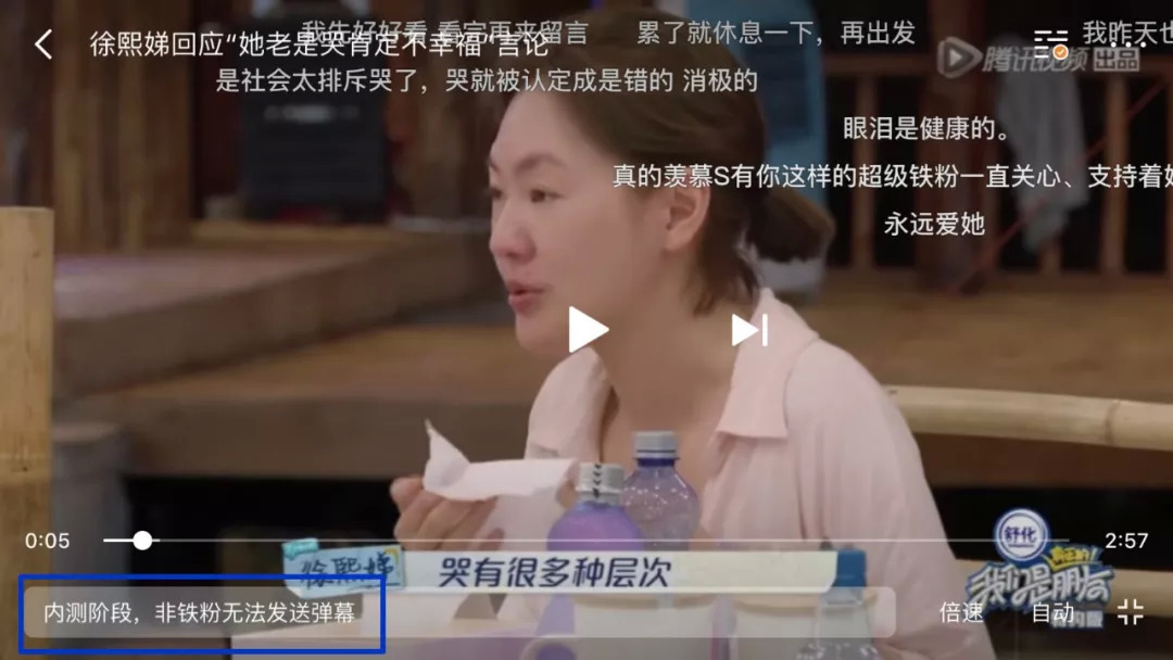 微博视频社区是微博测试弹幕的窗口,获得视频社区首页推荐的视频都已开放了弹幕功能。目前拥有发布弹幕“特权”的,是一群被微博定义为“铁粉”的高粘性、高活跃度、高参与度的用户。普通用户仅可以观看和手动选择开闭弹幕。