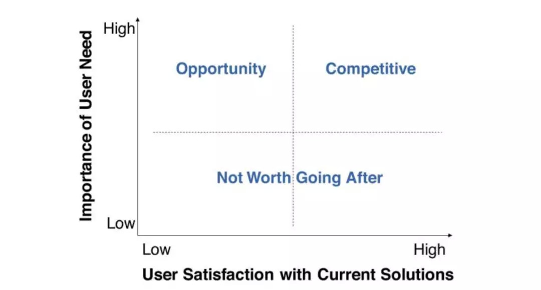 1. 需求重要程度高,当前解决方案满意度高:意味着这是一个高度竞争的产品空间;