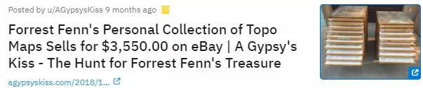在 eBay 上陆陆续续开始有人售卖声称是绝对有用的宝藏信息,甚至是Fenn 使用过的各种户外工具。