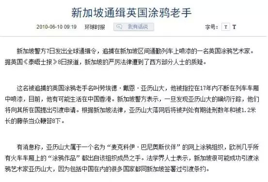 因涂鸦被鞭刑的,不止是美国人。